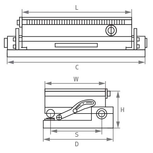 Die Winkeleinstellung führen Sie mit Hilfe der Endmaße nach dem Sinusprinzip durch. Die einzigartige Konstruktion des Lagers ermöglicht zusammen mit der gehärteten Grundplatte und der Seitenführung eine extreme Genauigkeit auch nach einer längeren Einsatzdauer.