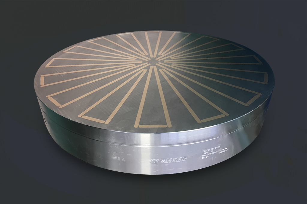 Circu EM ist eine elektromagnetische Spannplatte mit radialer Polanordnung, die zu Aufspannen auf den Drehtischen der Schleifmaschinen und Drehbänken zwecks stabilem Aufspannen von Rotationswerkstücken mit ringförmiger oder zylinderförmiger Form wie Lagerringen, Buchsen, Sägescheiben u. ä. vorgesehen ist. Dank der hohen Spannkraft und Möglichkeit deren Regelung ist diese Spannplatte auch für leichte Werkstücke geeignet.